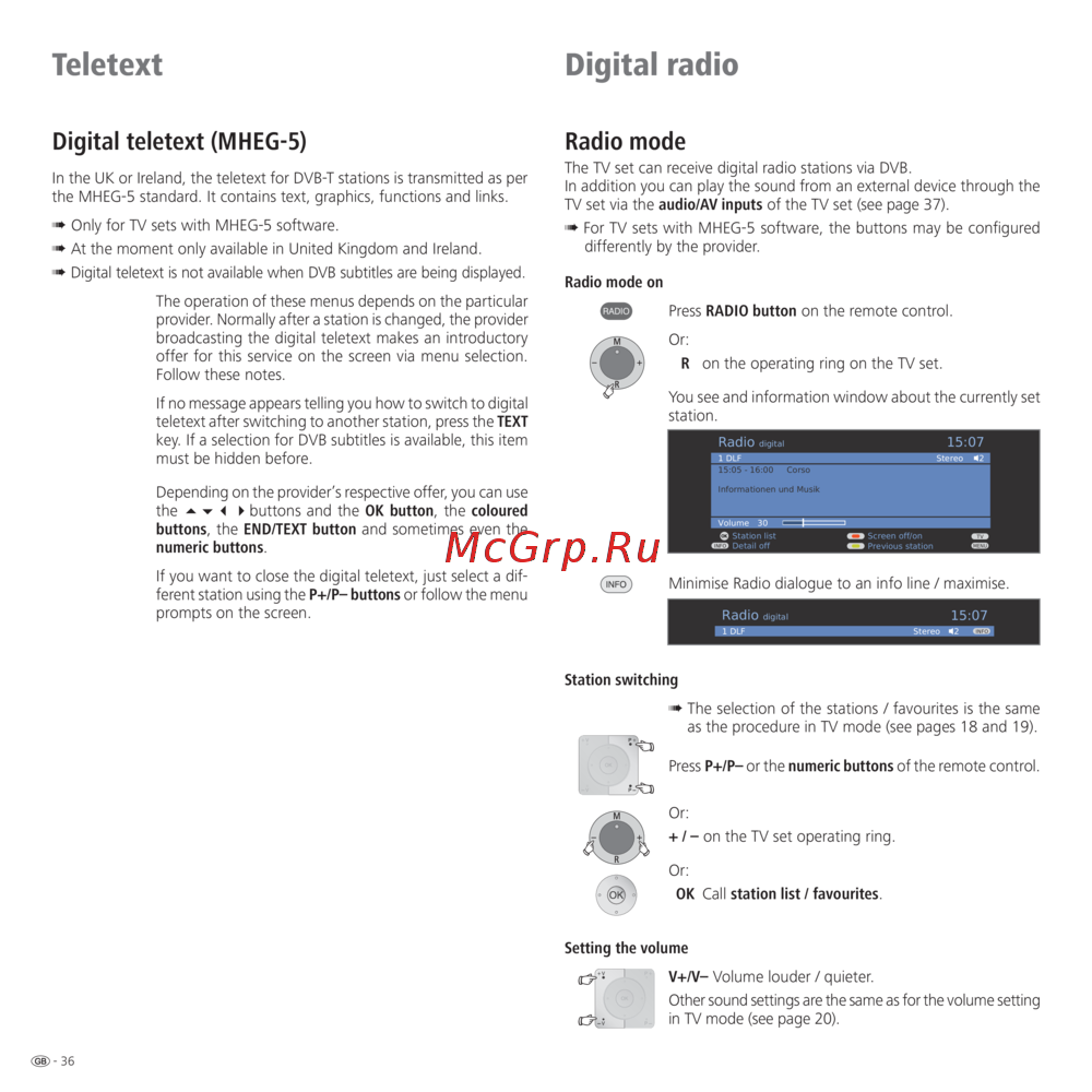 ➠ For TV sets with MHEG-5 software, the buttons may be configured