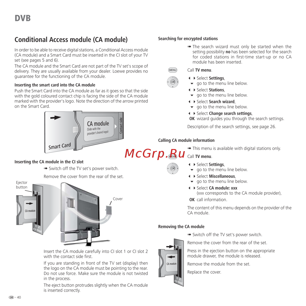 The CA module and the Smart Card are not part of the TV set's scope of