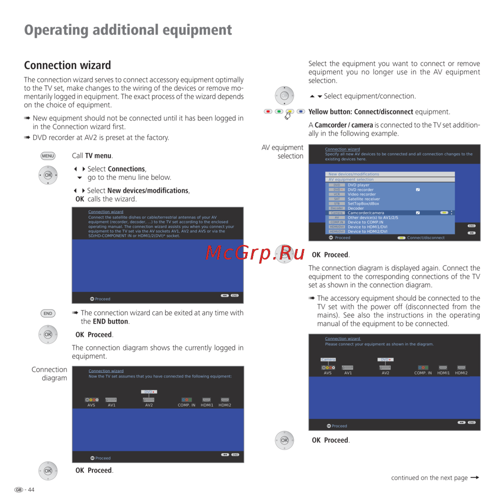 - The connection wizard serves to connect accessory equipment optimally to the tv set make changes to the wiring of the devices or remove mo mentarily logged in equipment the exact process of the wizard depends on the choice of equipment p.44
