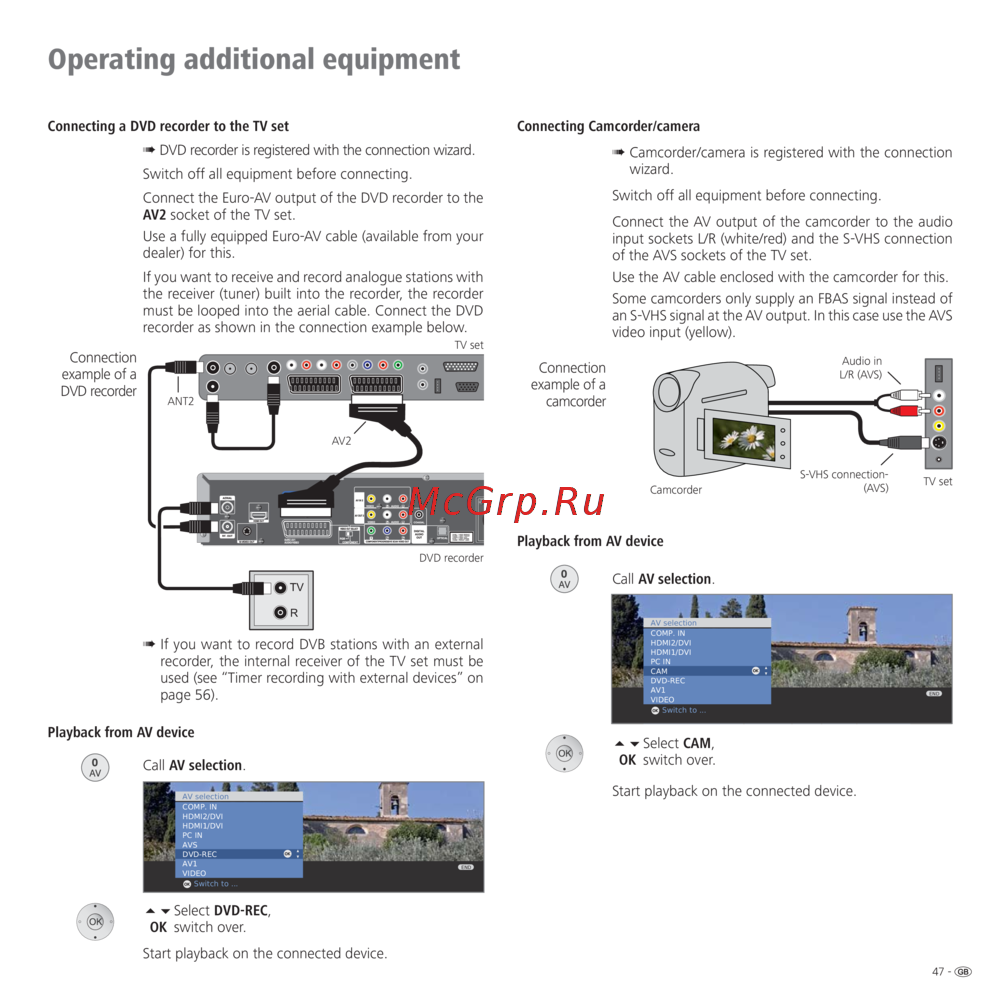 - New equipment should not be connected until it has been logged in in the connection wizard first dvd recorder at av2 is preset at the factory p.44