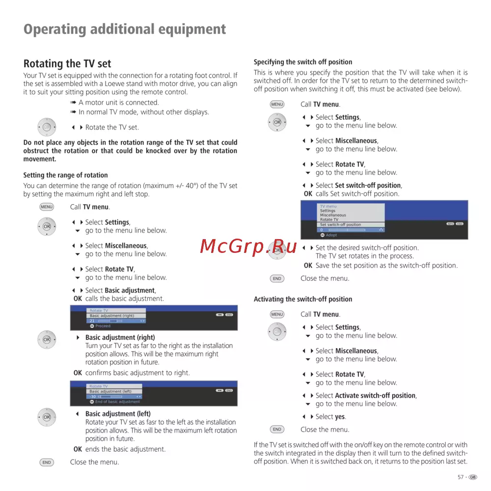 - Rotating the tv set p.57