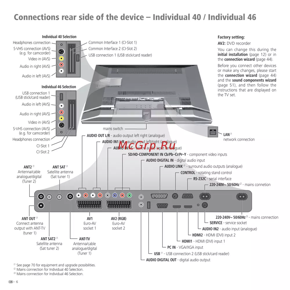 Loewe Individual 46 Selection Full-HD+ 100 [6/76] Connections rear side of the device individual 40 individual 46