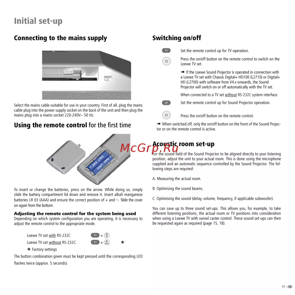 Loewe Individual Sound Projector [13/30] Using the remote control for the first time