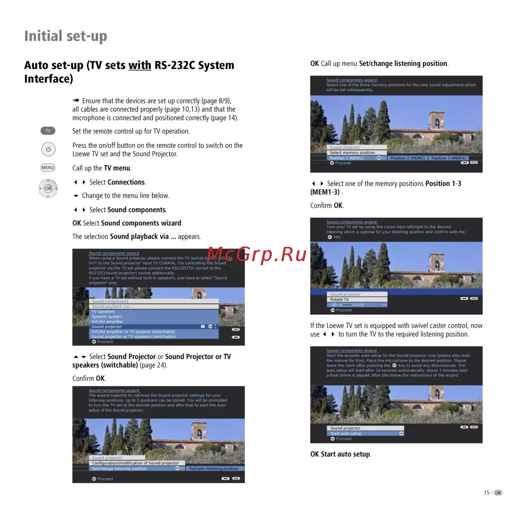 - Saving sound set up you can save up to three sound set ups this allows you for example to take different listening positions the actual room or tv positions into consideration when using a loewe tv with swivel caster control you can than call up these sound set ups at any time p.18