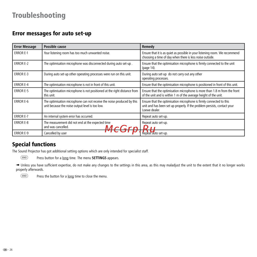 Loewe Individual Sound Projector — решение проблем с ошибками при автоматической настройке устройства [26/30]