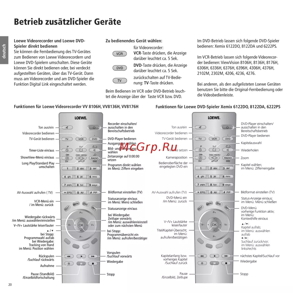 - Funktionen für loewe videorecorder vv 8106h vv8136h vv8176h funktionen für loewe dvd spieler xemix 6122do 8122da 6222ps p.20