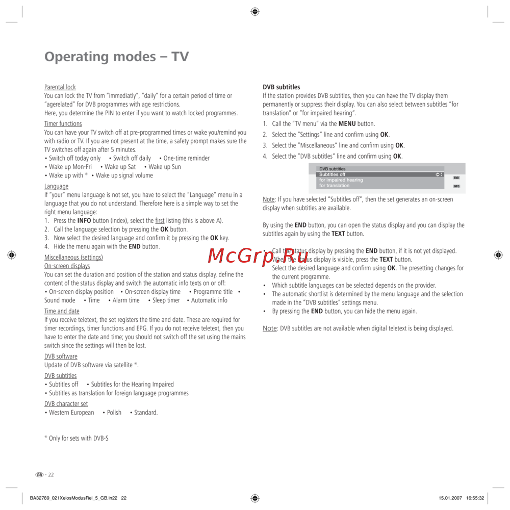 Loewe Modus L 37 — настройка DVB субтитров и родительского контроля на телевизоре [22/46]