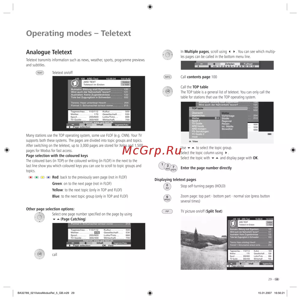 - Operating modes teletext p.29