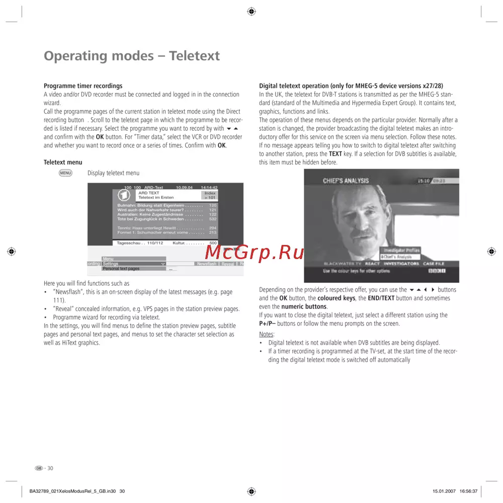 - Operating modes teletext p.30