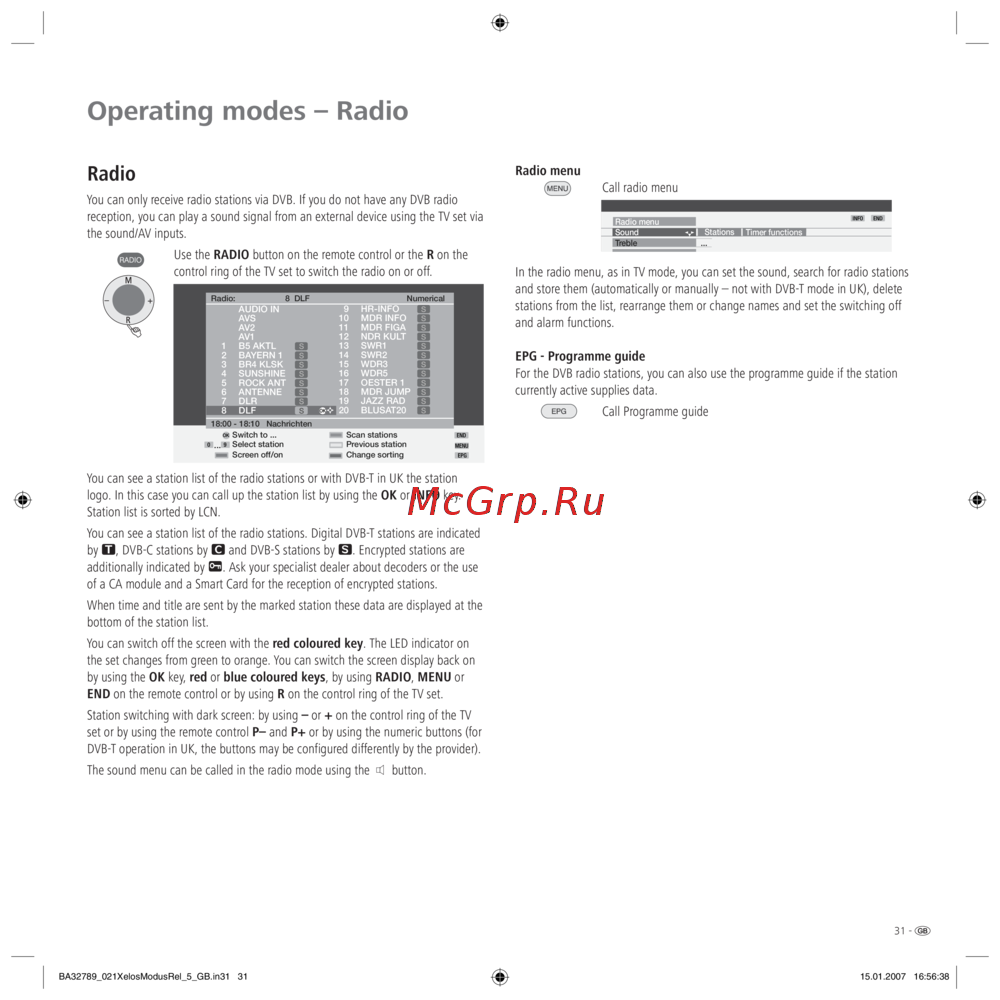 Operating modes – Radio