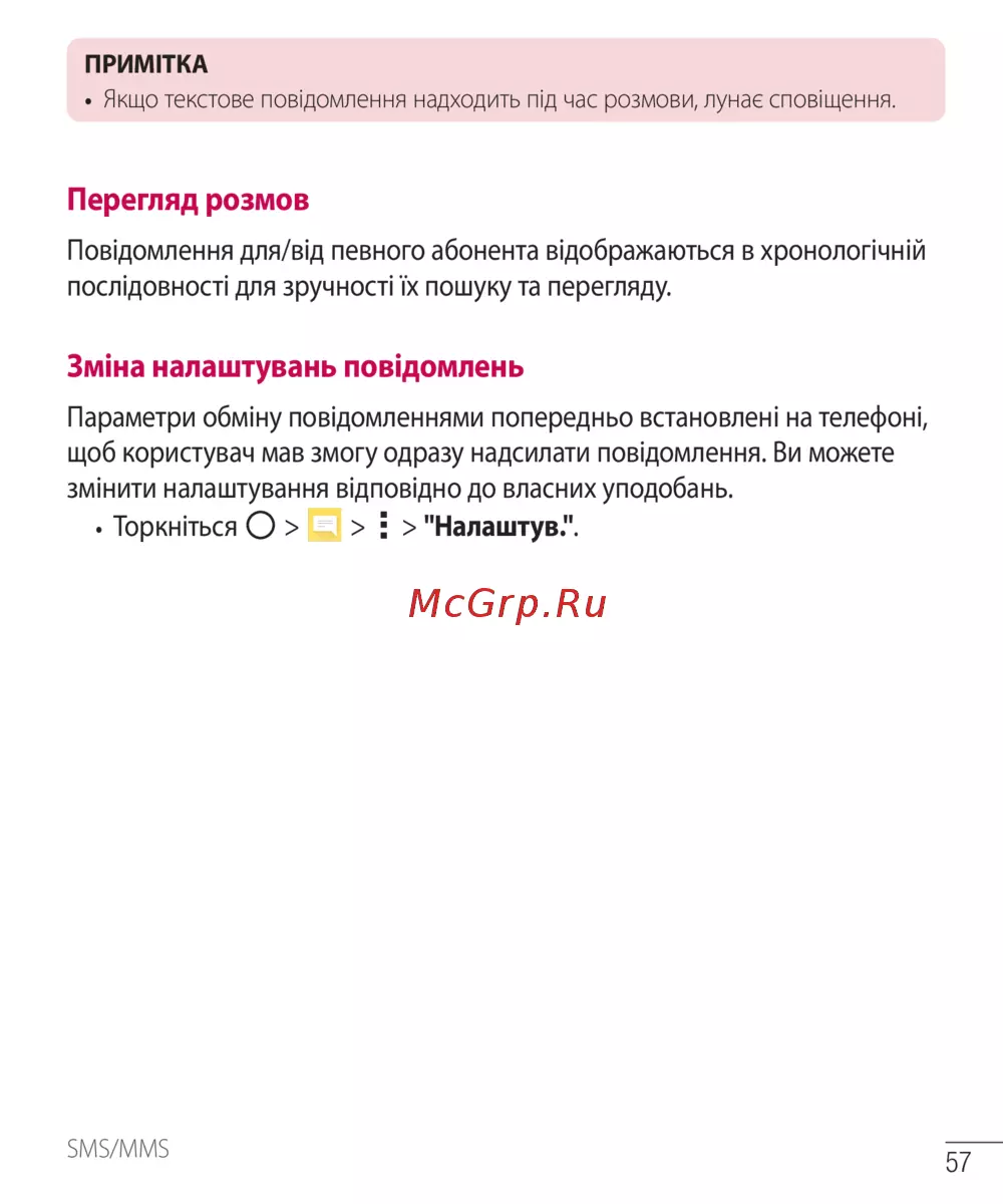 Параметри обміну повідомленнями попередньо встановлені на телефоні,