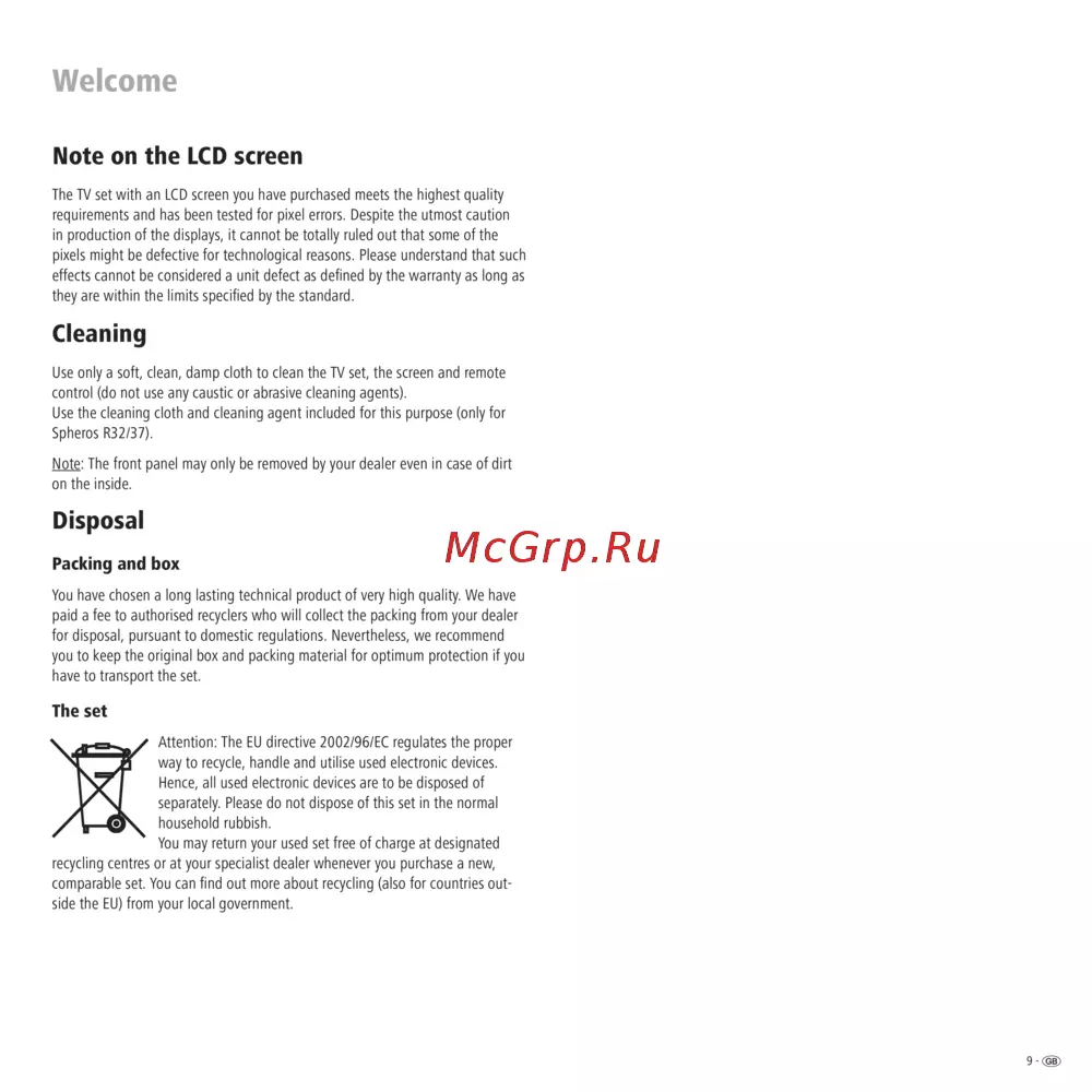 Loewe Spheros R 26 — инструкция по уходу и утилизации ЖК-телевизора [9/54]