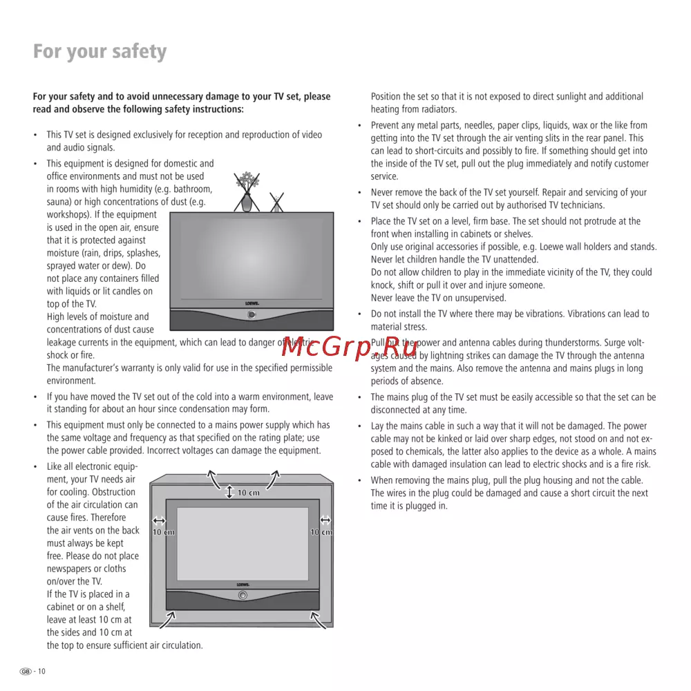 Loewe Spheros R 37 — важные инструкции по безопасности для вашего телевизора [10/54]