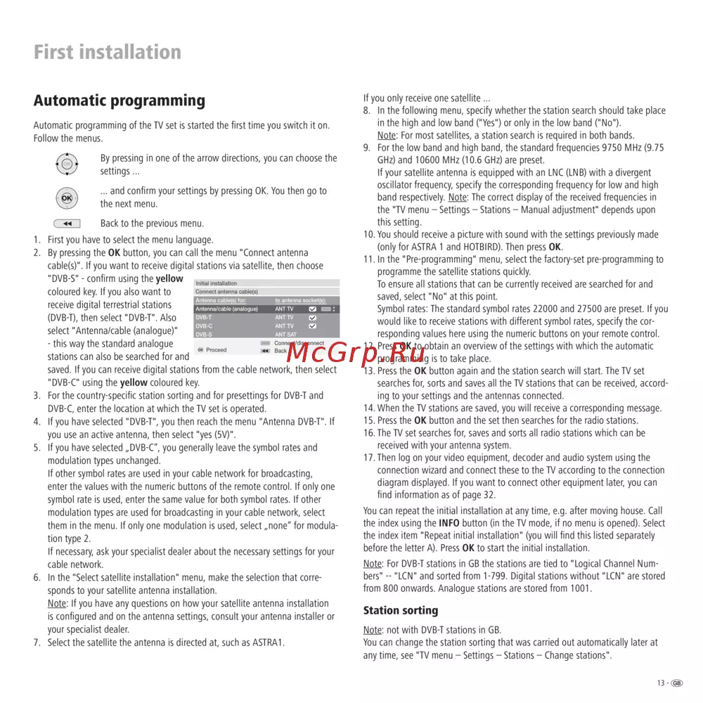 searches for, sorts and saves all the TV stations that can be received, accord-
