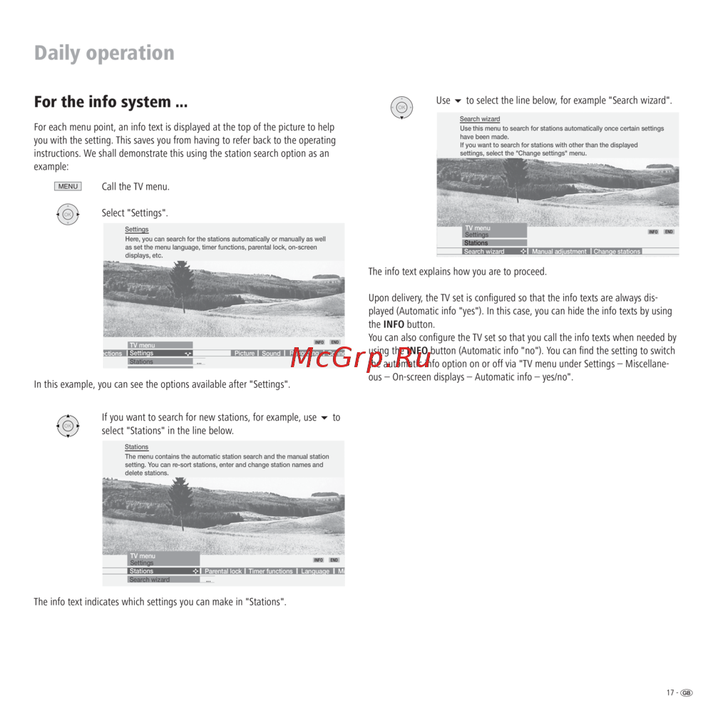 the automatic info option on or off via "TV menu under Settings – Miscellane-
