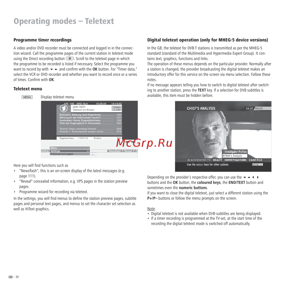 Loewe Spheros R 37 — управление телетекстом: Запись программ и настройки [30/54]