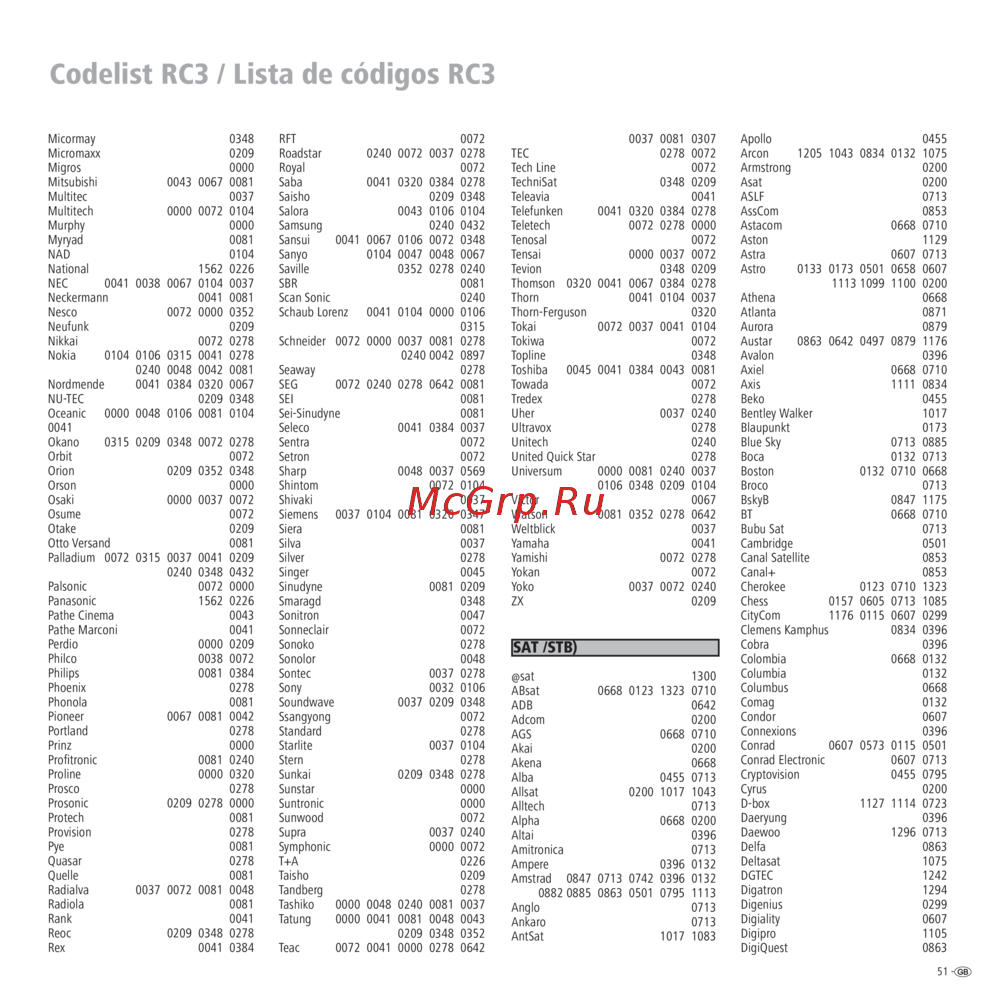 - Codelist rc3 lista de códigos rc3 p.51