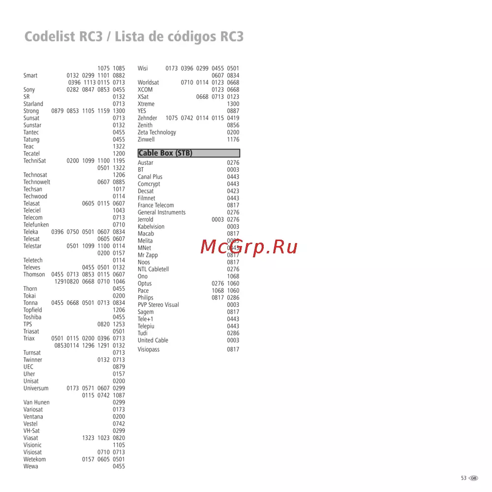 Loewe Spheros R 37 [53/54] Codelist rc3 lista de códigos rc3