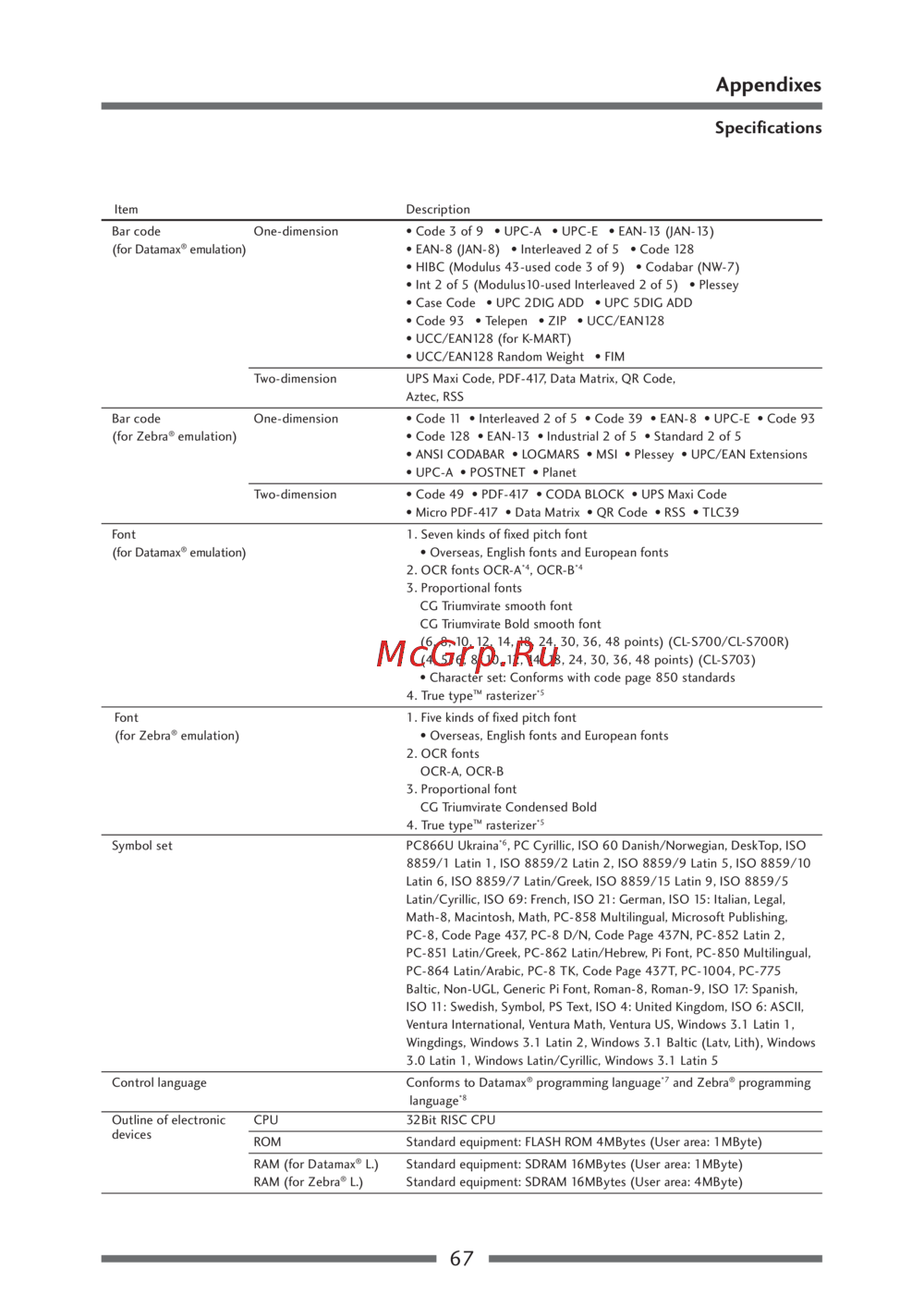 ![Citizen CL-S700 [67/80] Specifications](/views2/1204396/page67/bg43.png)