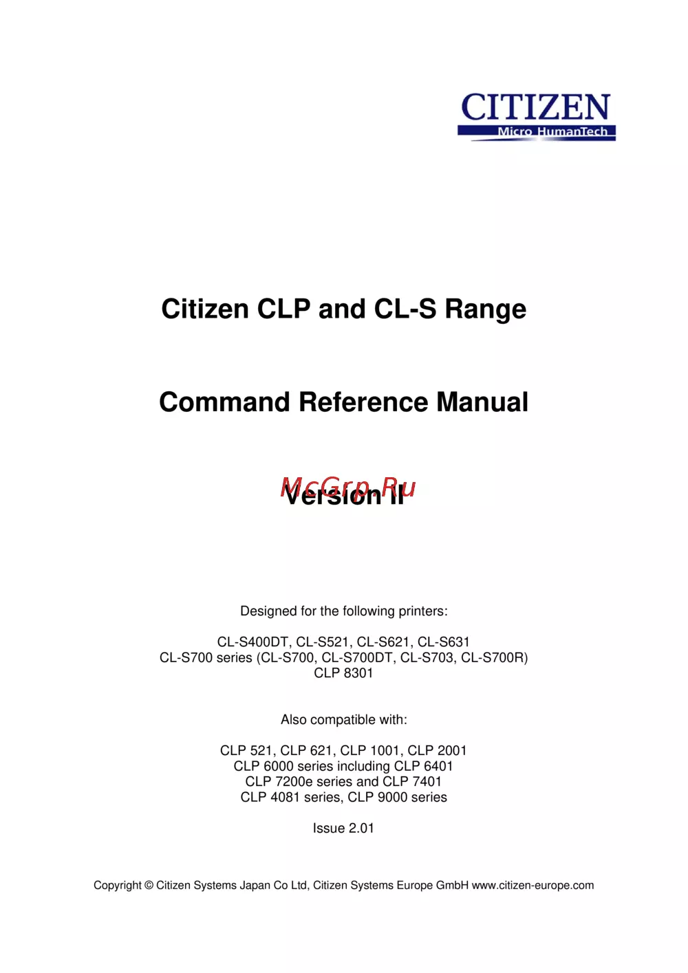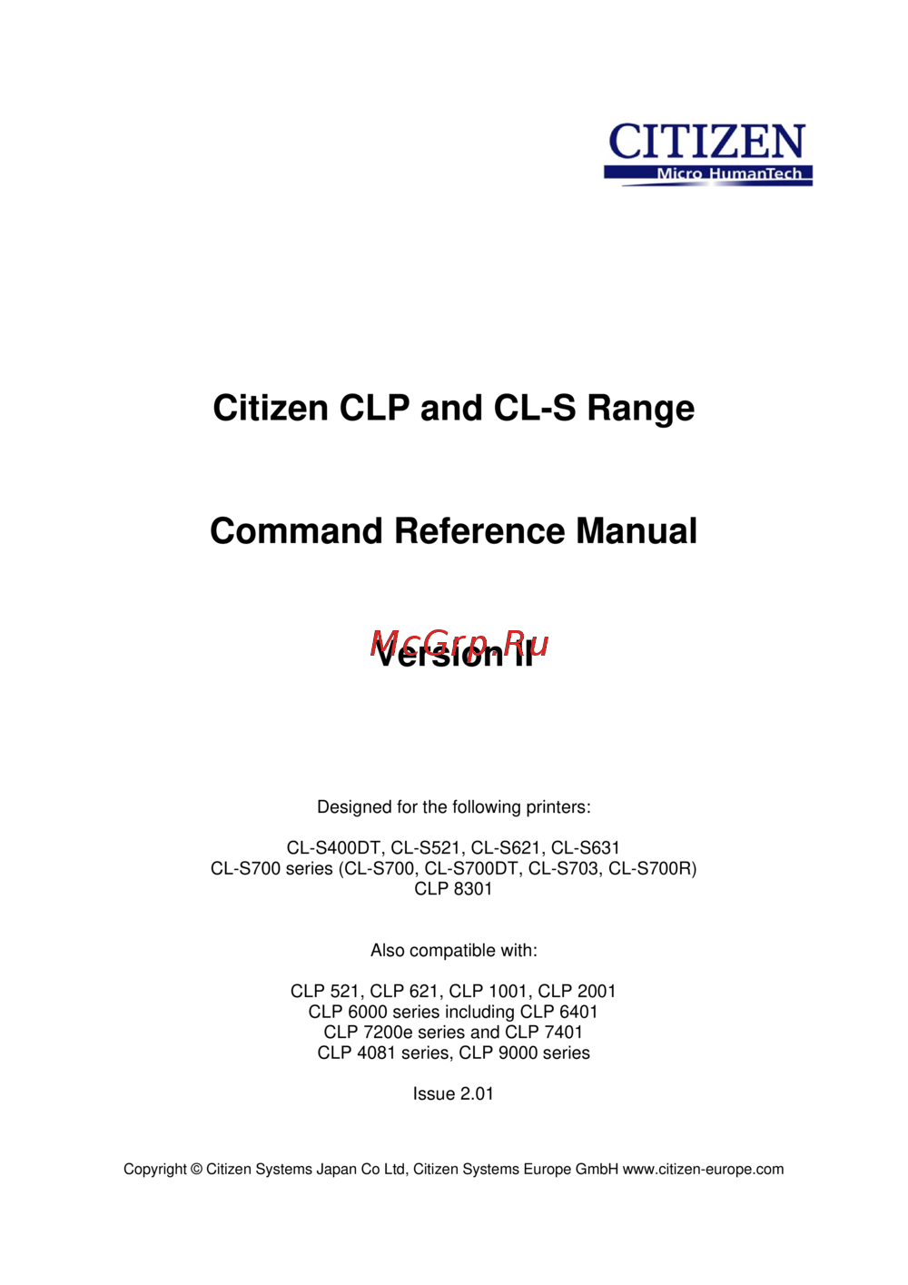 - Citizen clp and cl s range command reference manual version ii p.1