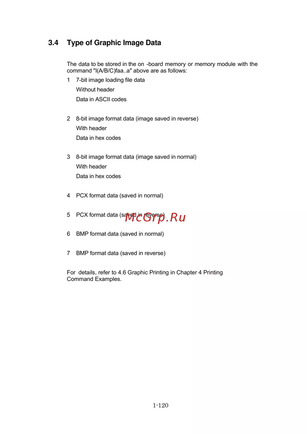 - Bit image data uses ascii format data in this example 7 bit image data with the file name of mark7 is stored in the memory card and printed out value of inside is shown in hex format p.26
