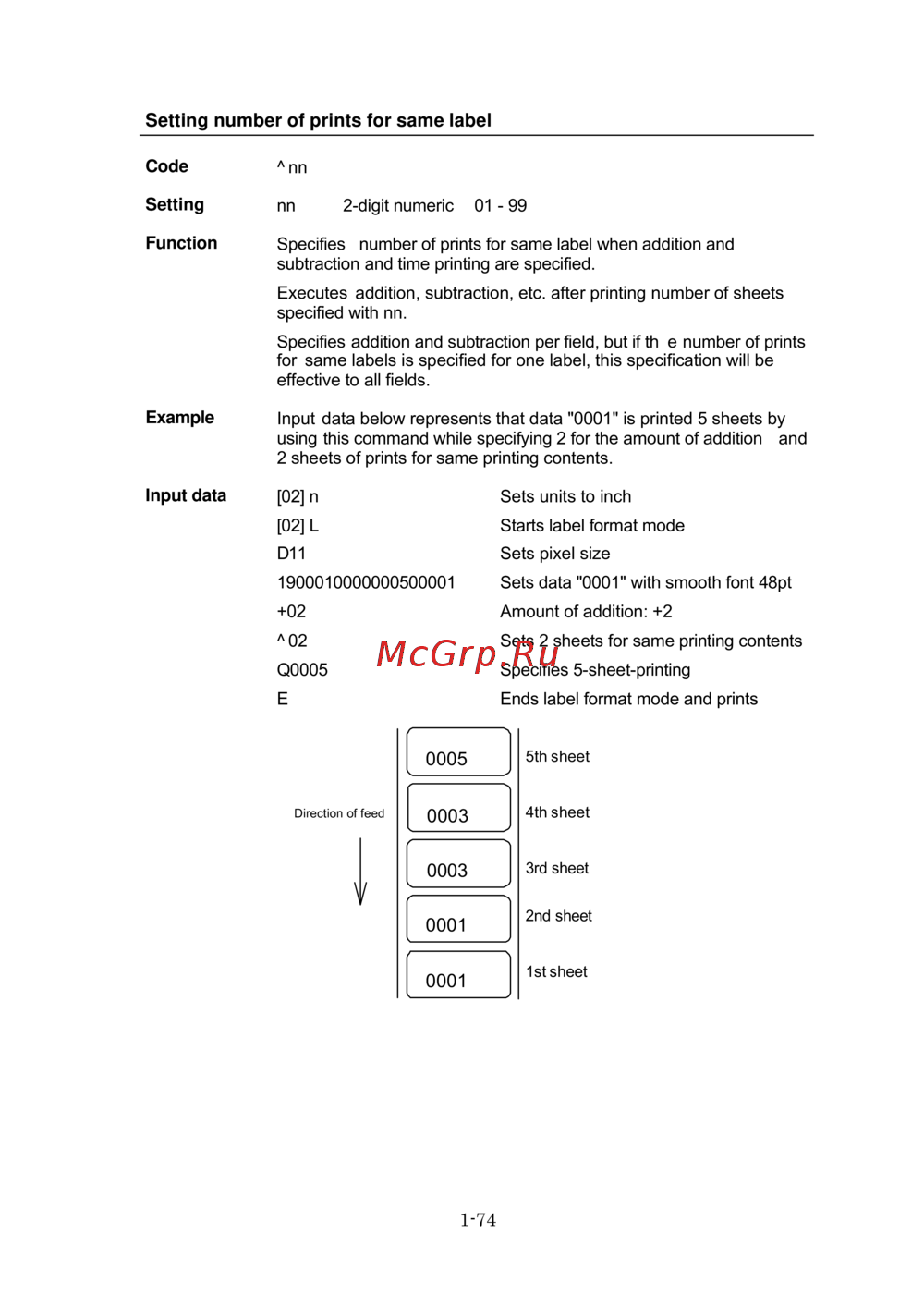 - When nnn is large the amount of feed is large so the next printing label will be cut p.23