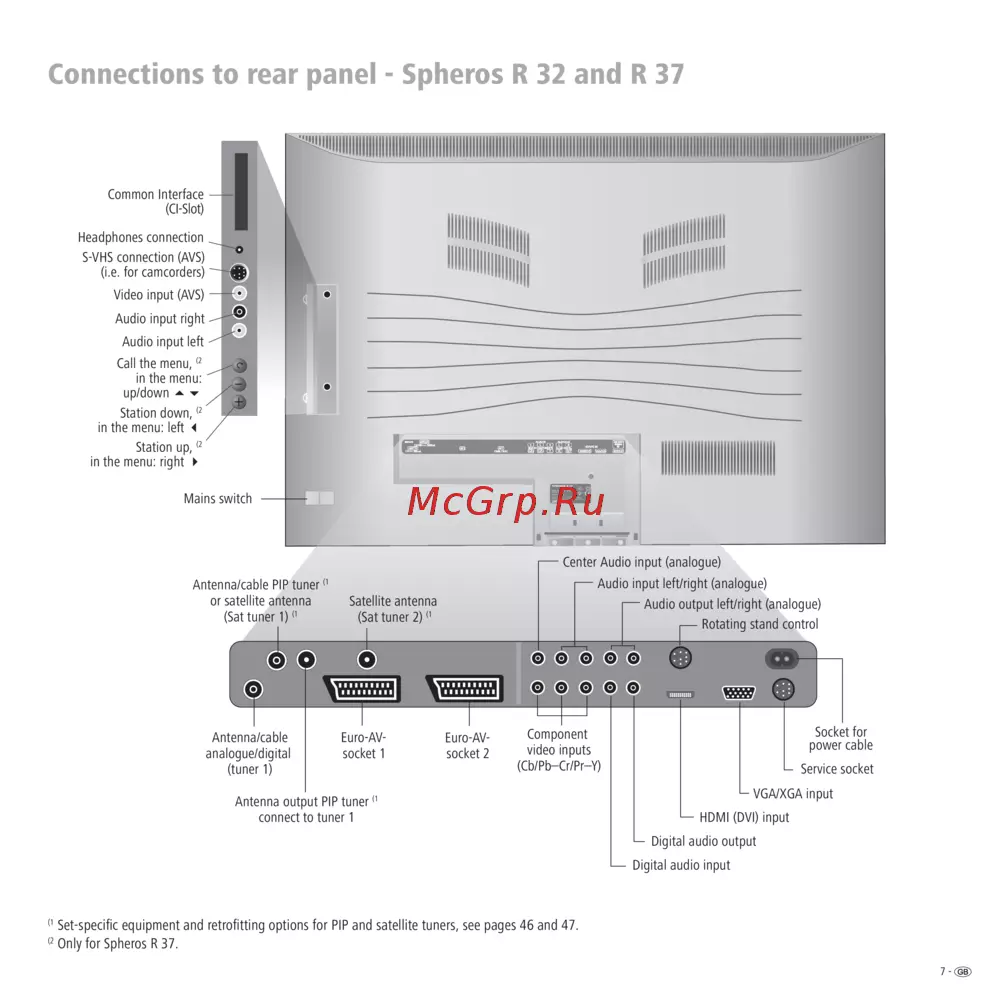 Loewe Spheros R 32 HD+ [7/54] Set specifi c equipment and retrofi tting options for pip and satellite tuners see pages 46 and 47