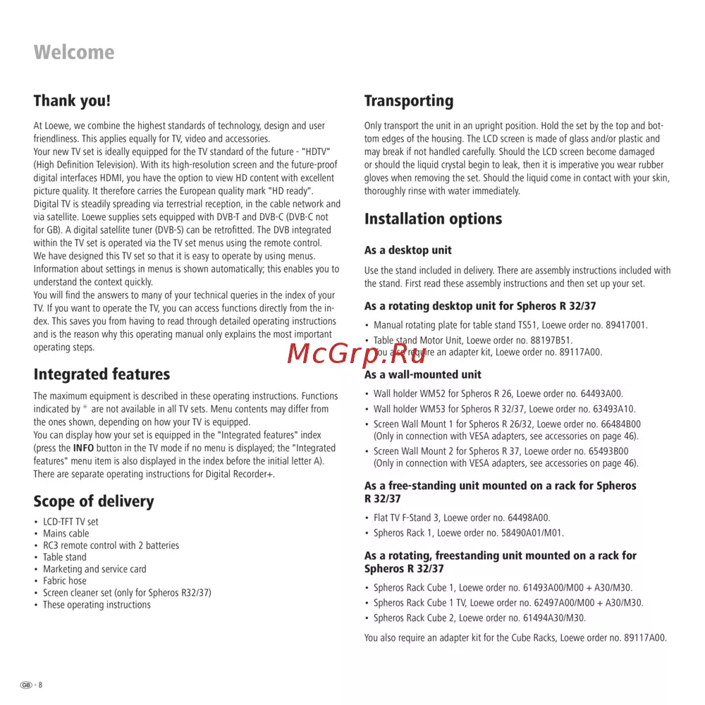 Loewe Spheros R 32 HD+ — установка и транспортировка телевизора: советы и рекомендации [8/54]