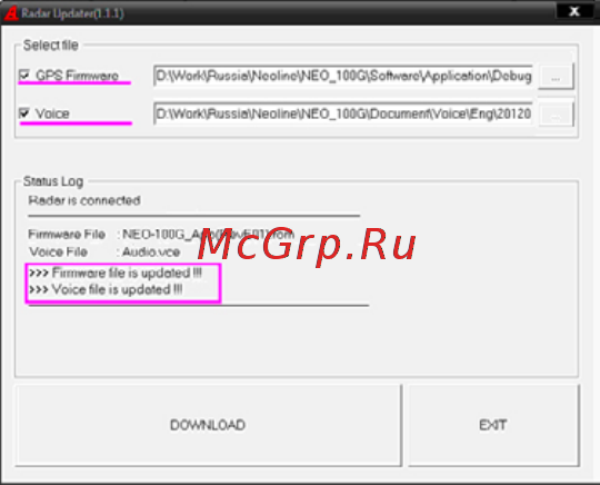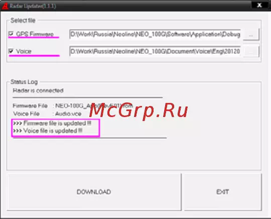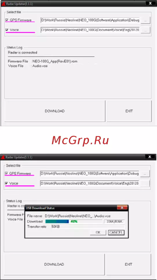 При необходимости выберите два файла: GPS Firmware и Voice