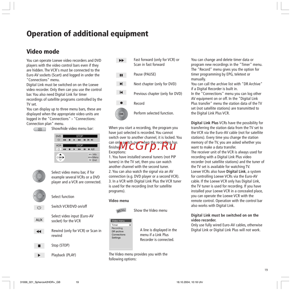 - The infrared code and the functional scope for a loewe vcr is set ex factory p.25