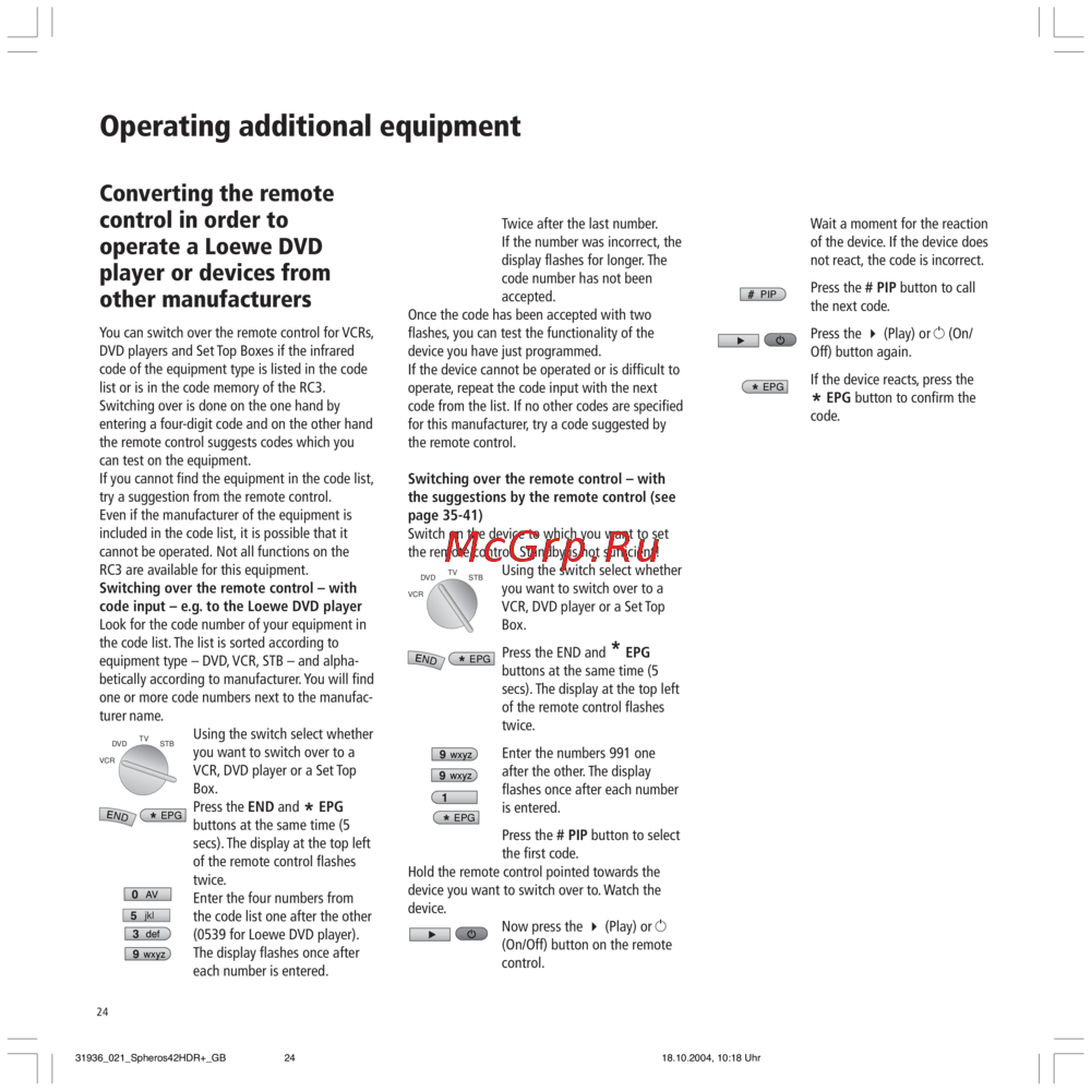- Converting the remote control in order to operate a loewe dvd player or devices from other manufacturers p.24