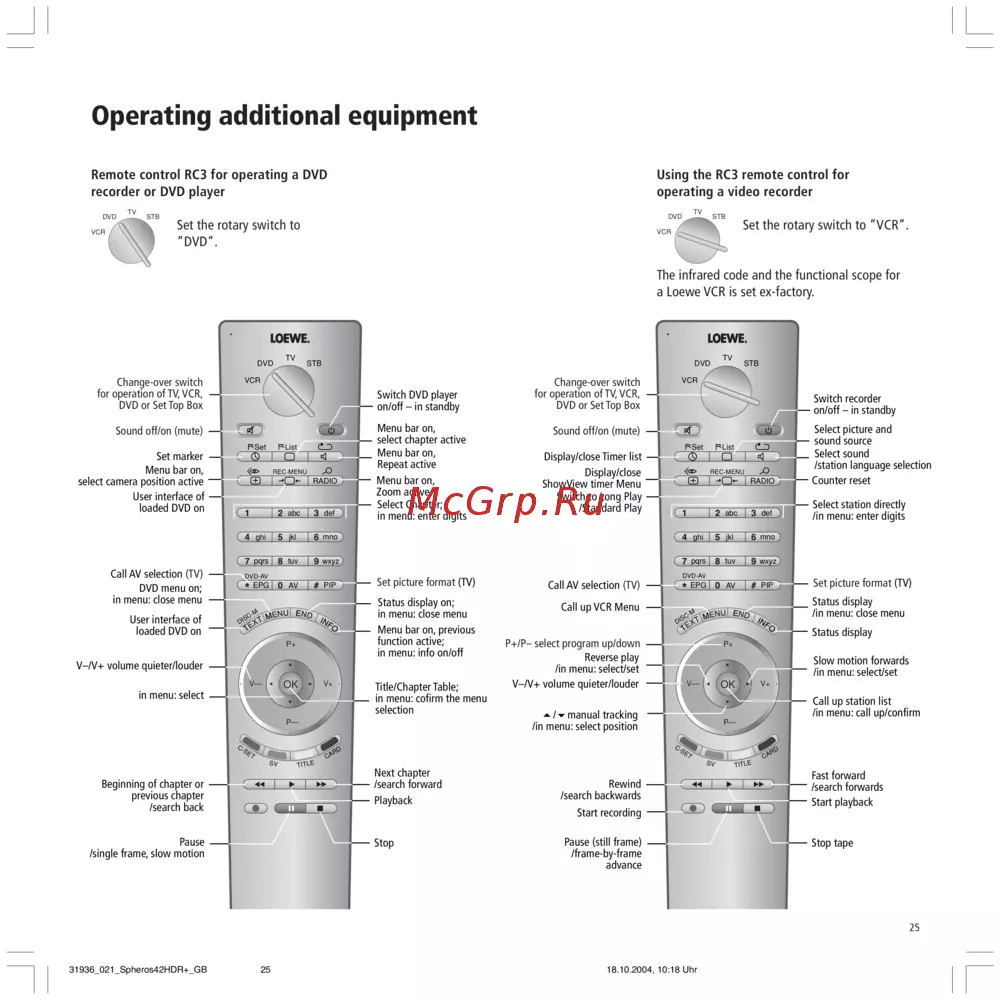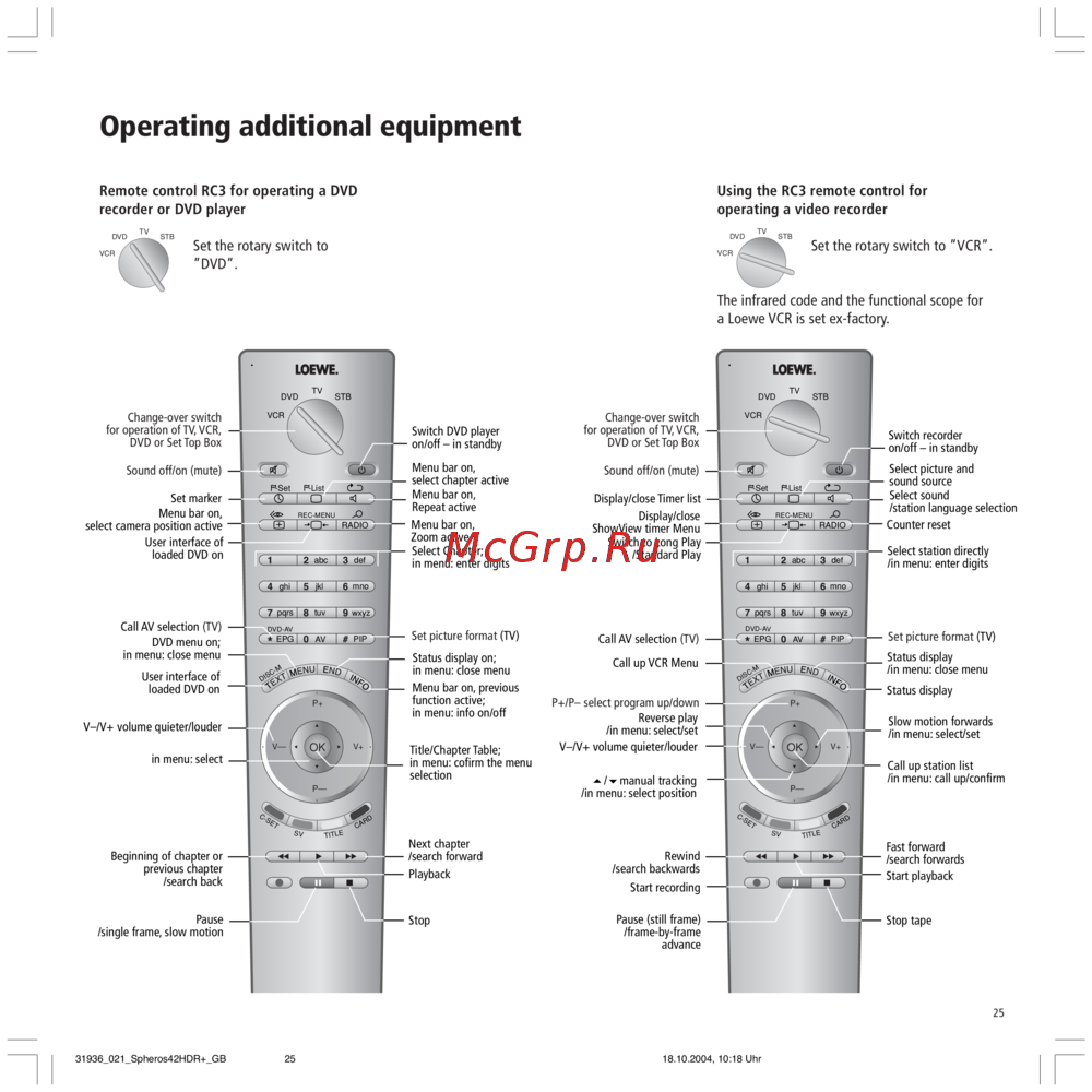 - The infrared code and the functional scope for a loewe vcr is set ex factory p.25