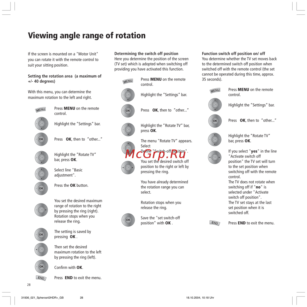 Loewe Spheros R 42 [28/42] Viewing angle range of rotation