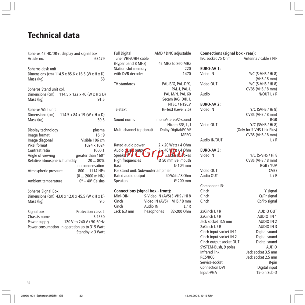 Loewe Spheros R 42 [32/42] Technical data