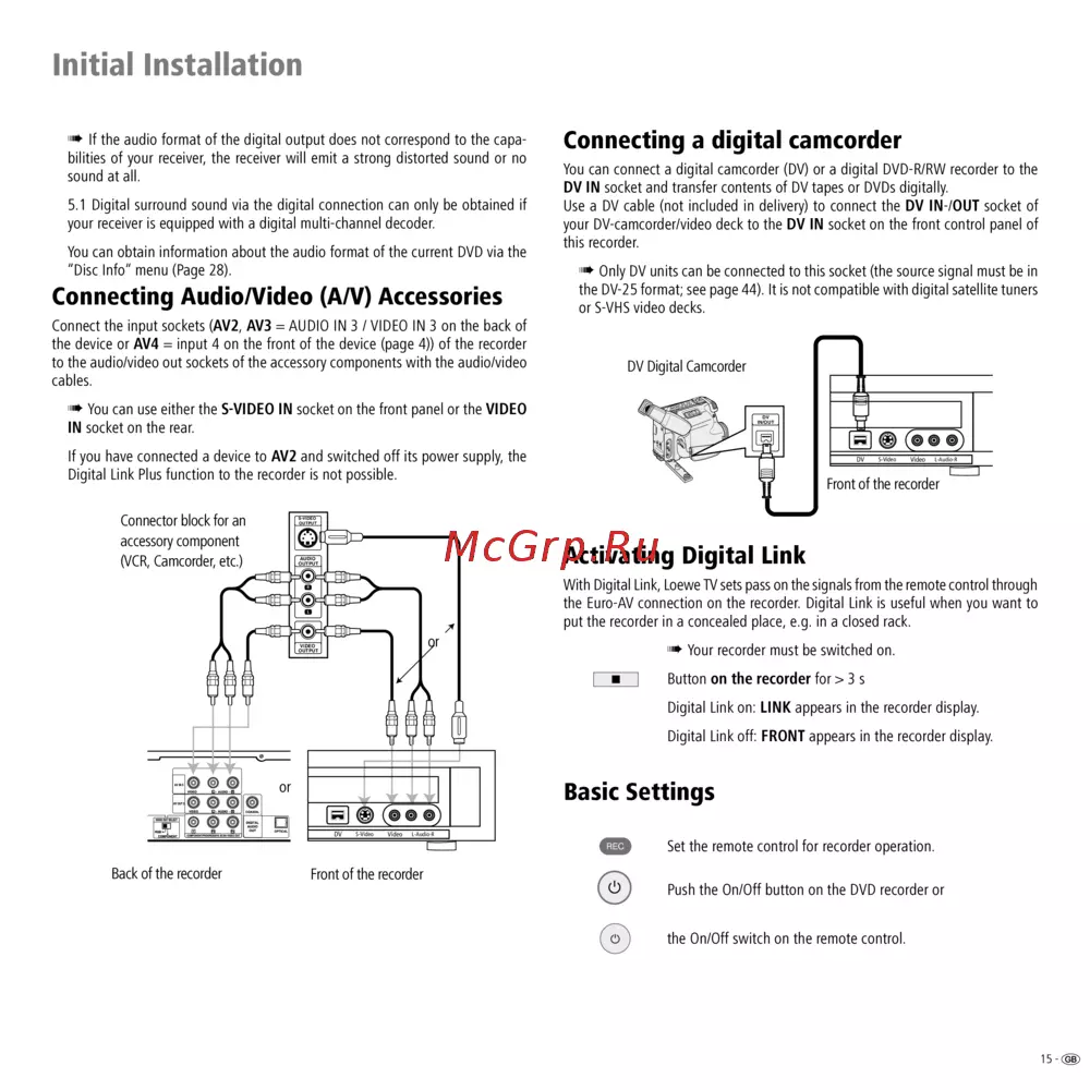 the device or AV4 = input 4 on the front of the device (page 4)) of the recorder
