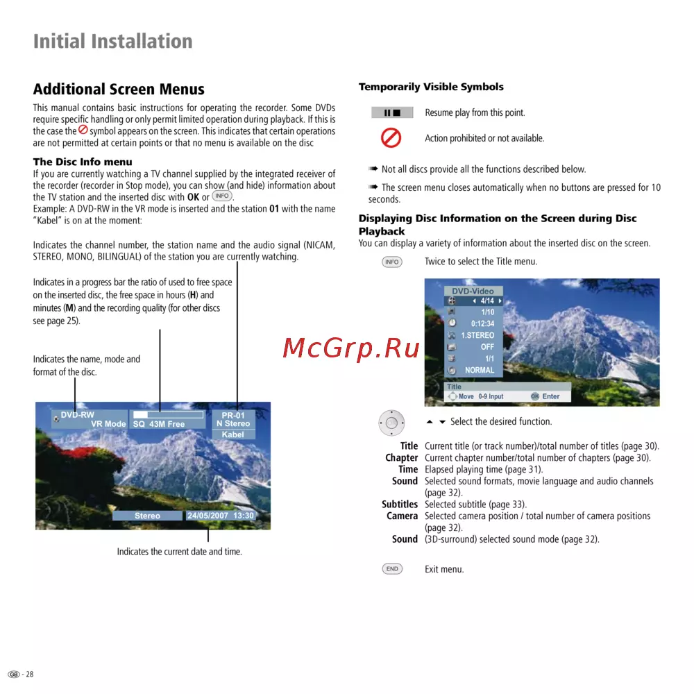 are not permitted at certain points or that no menu is available on the disc
