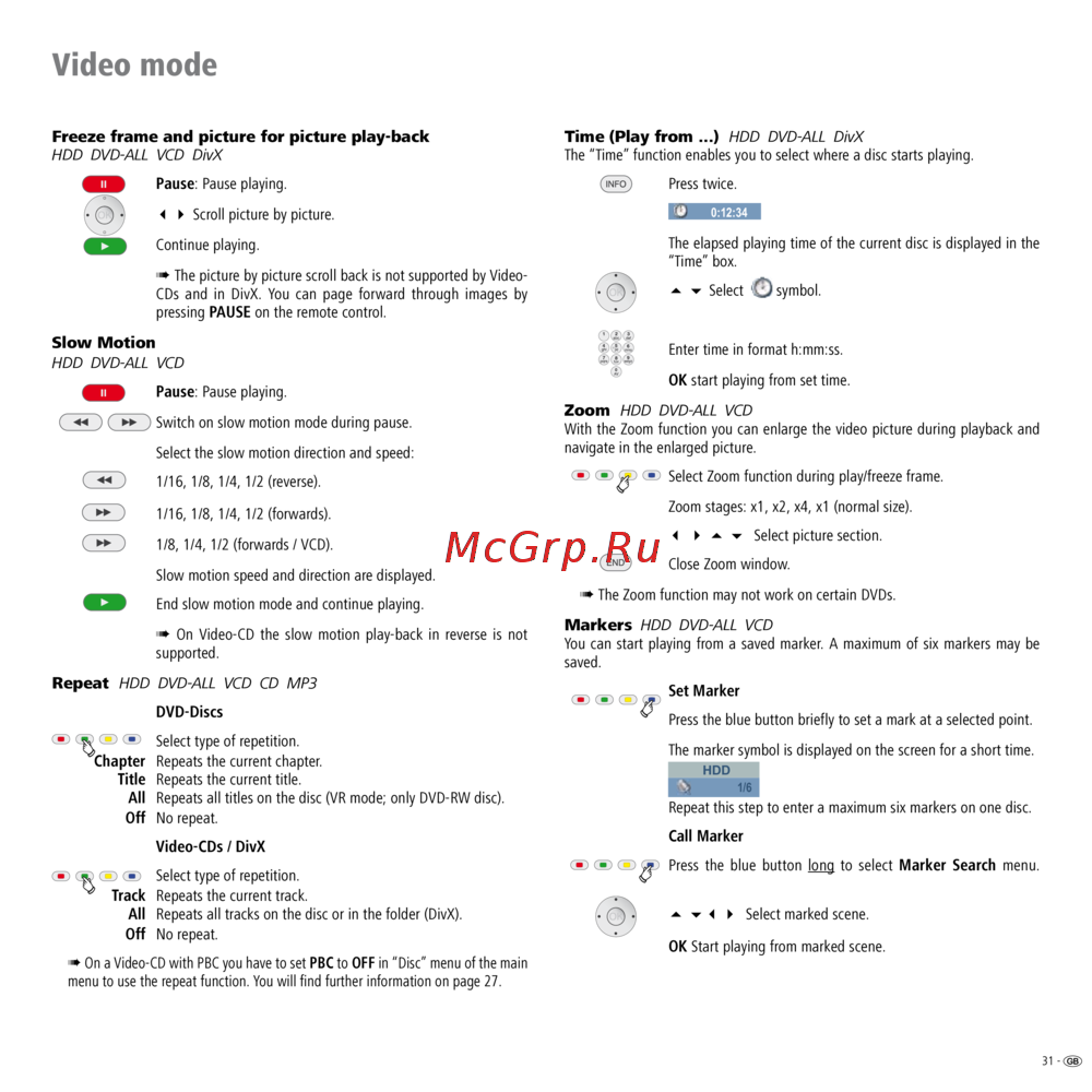 ➠ On a Video-CD with PBC you have to set PBC to OFF in “Disc” menu of the main