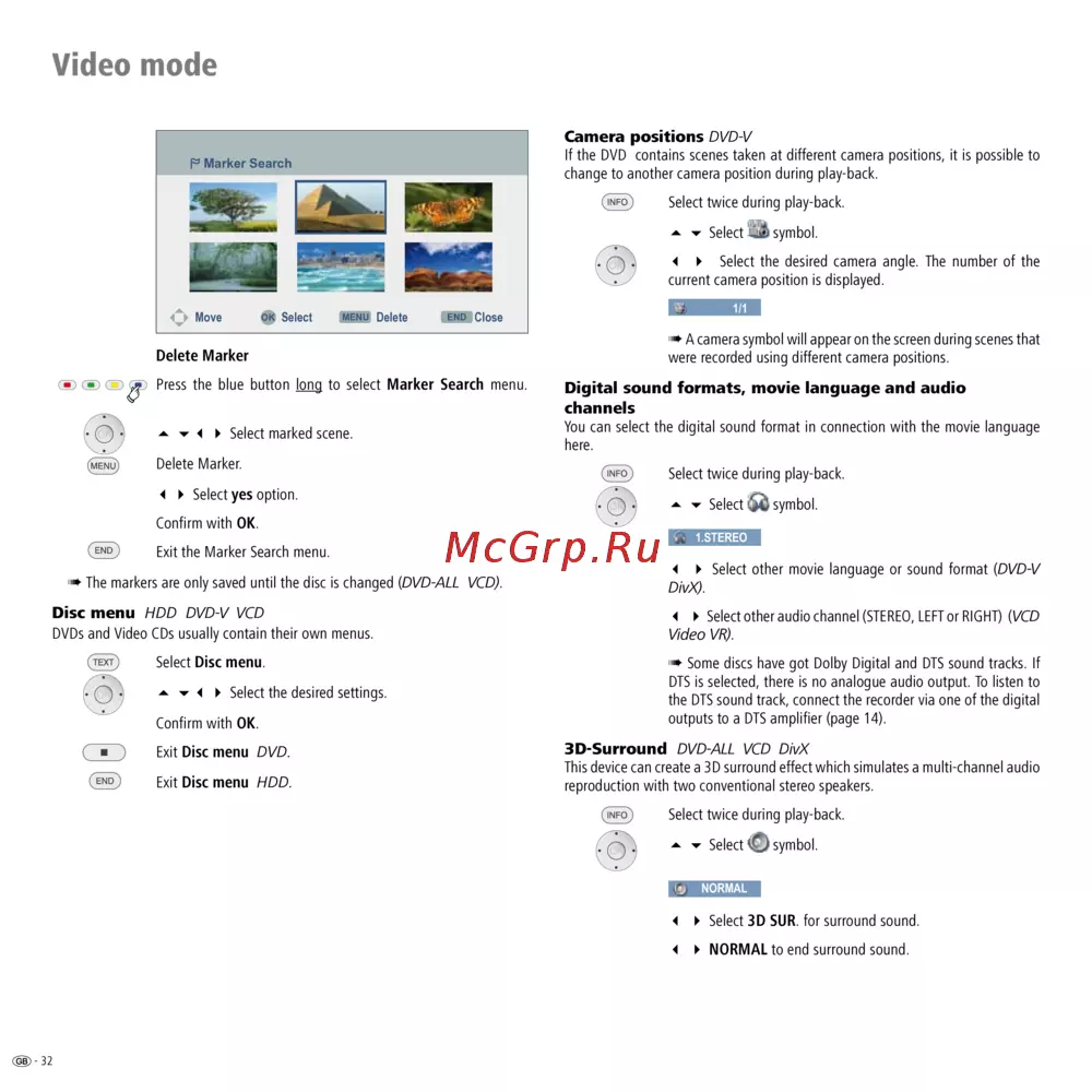 ➠ The markers are only saved until the disc is changed (DVD-ALL VCD).