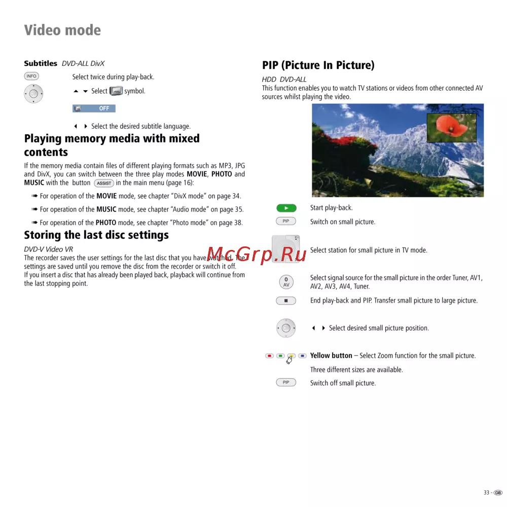 Изучите, как управлять воспроизведением видео, выбирать субтитры и настраивать режимы воспроизведения на медиаплеере. Узнайте о функциях PIP и сохранении настроек.