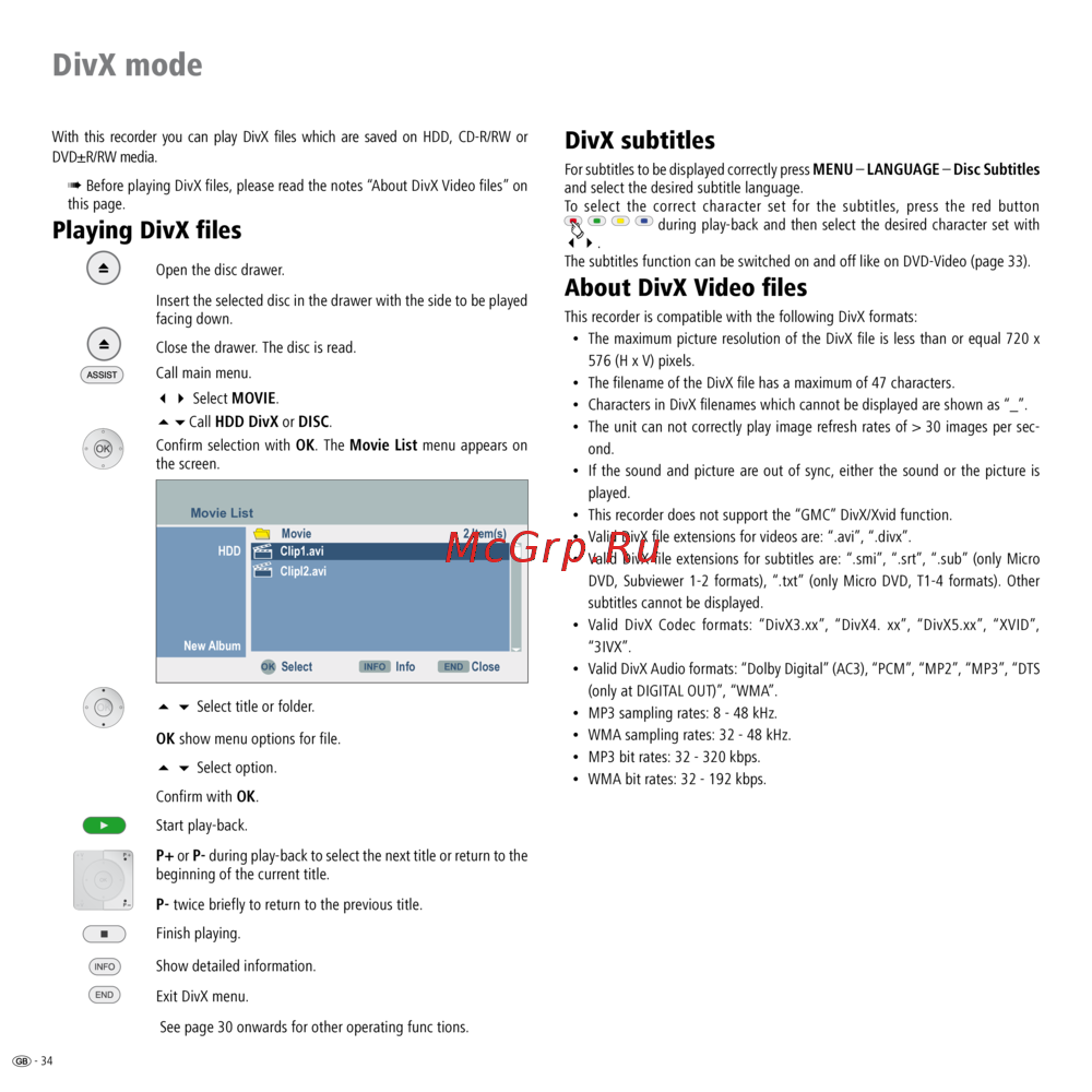 With this recorder you can play DivX files which are saved on HDD, CD-R/RW or