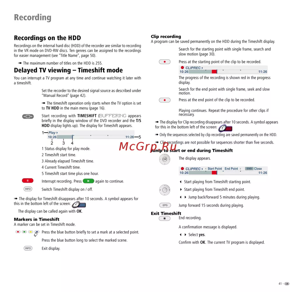 Recordings on the internal hard disc (HDD) of the recorder are similar to recording