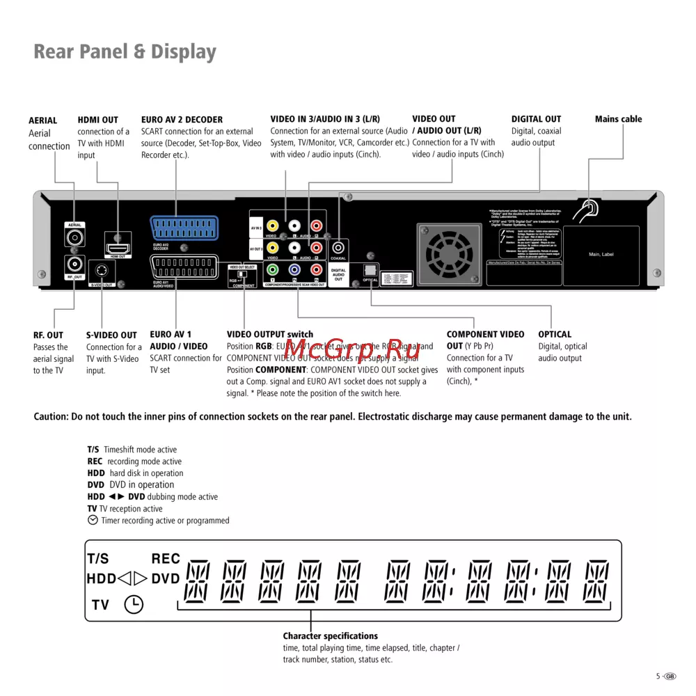 - Caution do not touch the inner pins of connection sockets on the rear panel electrostatic discharge may cause permanent damage to the unit p.5