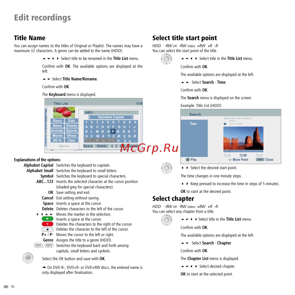 - Select title start point p.50