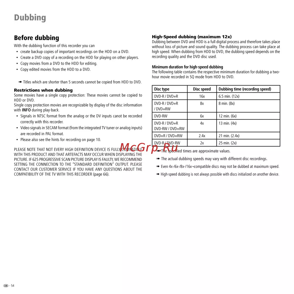 high speed. When dubbing from HDD to DVD, the dubbing speed depends on the