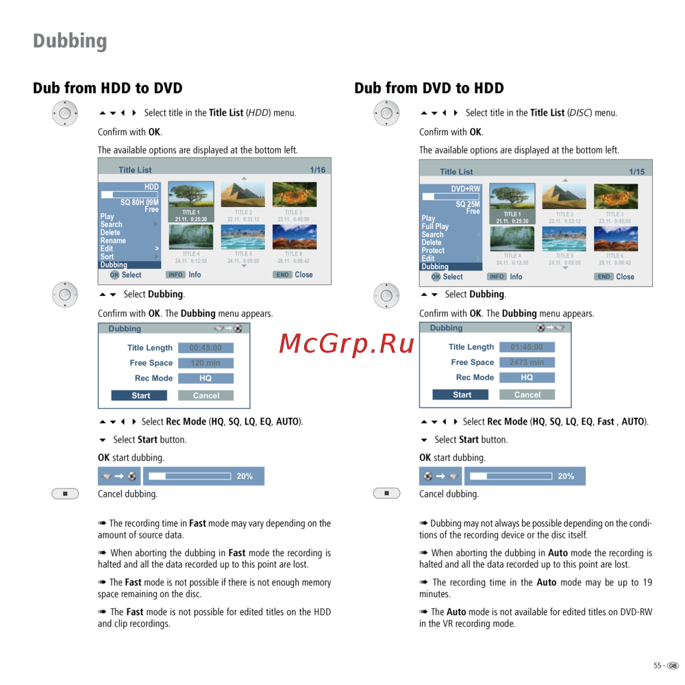 5634 Select Rec Mode (HQ, SQ, LQ, EQ, Fast , AUTO).