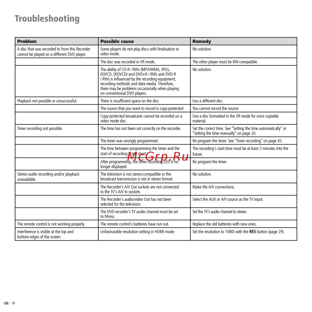 Loewe Viewvision DR+ [58/66] Troubleshooting