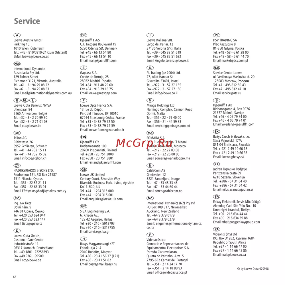 Loewe Viewvision DR+ — контактная информация международных компаний и офисов [66/66]