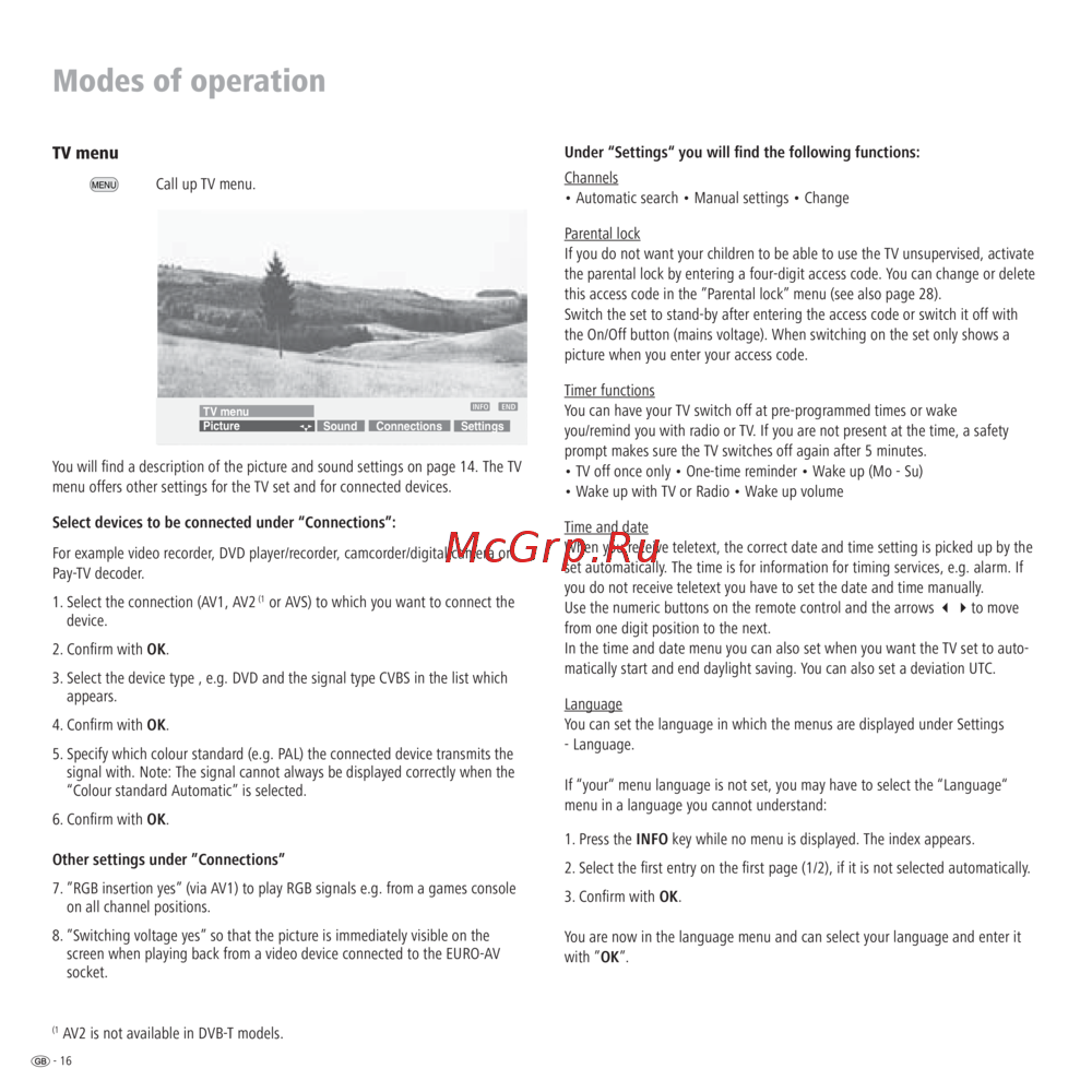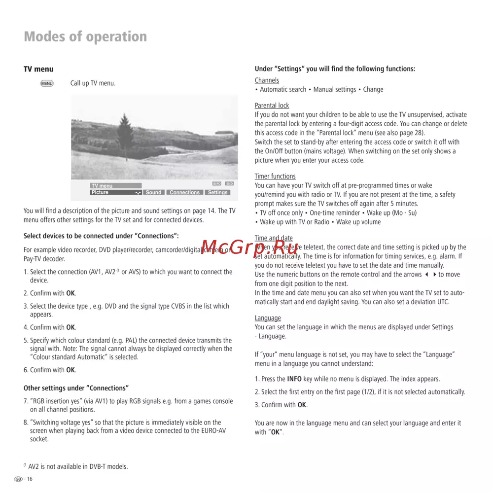 You will fi nd a description of the picture and sound settings on page 14. The TV