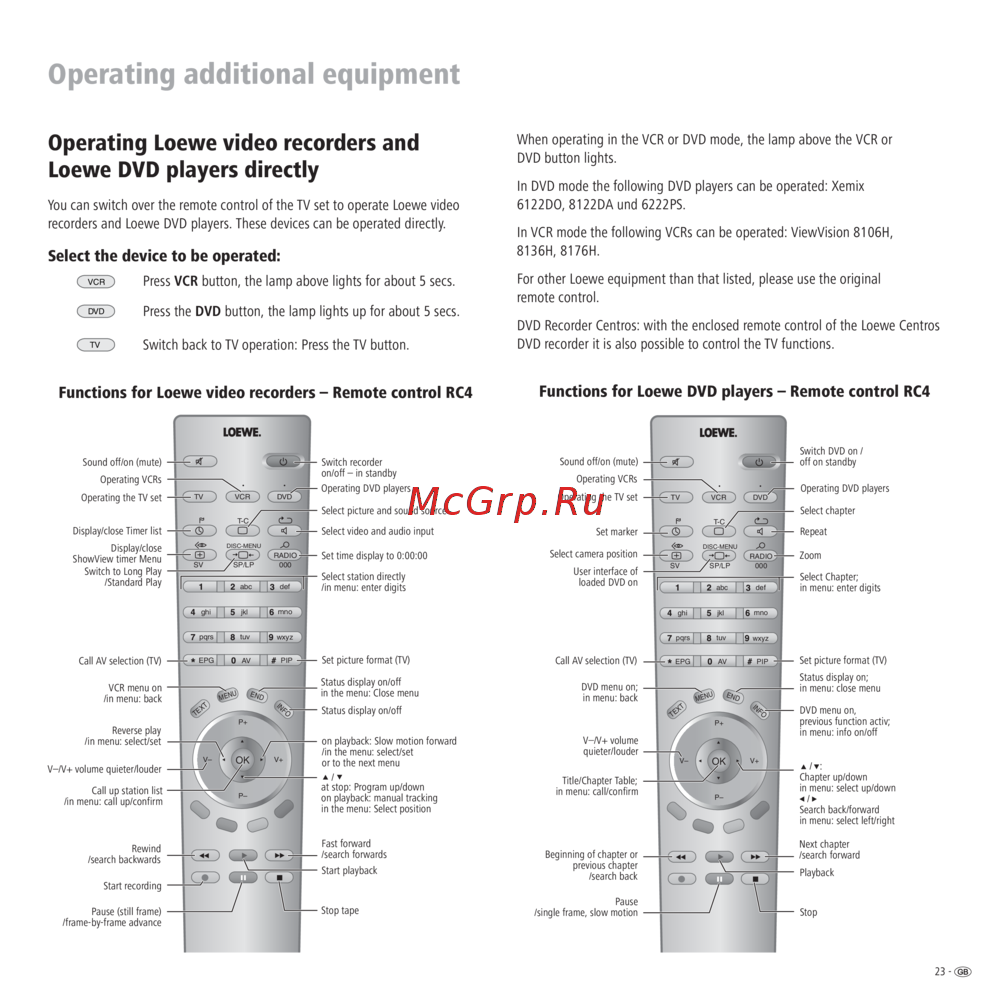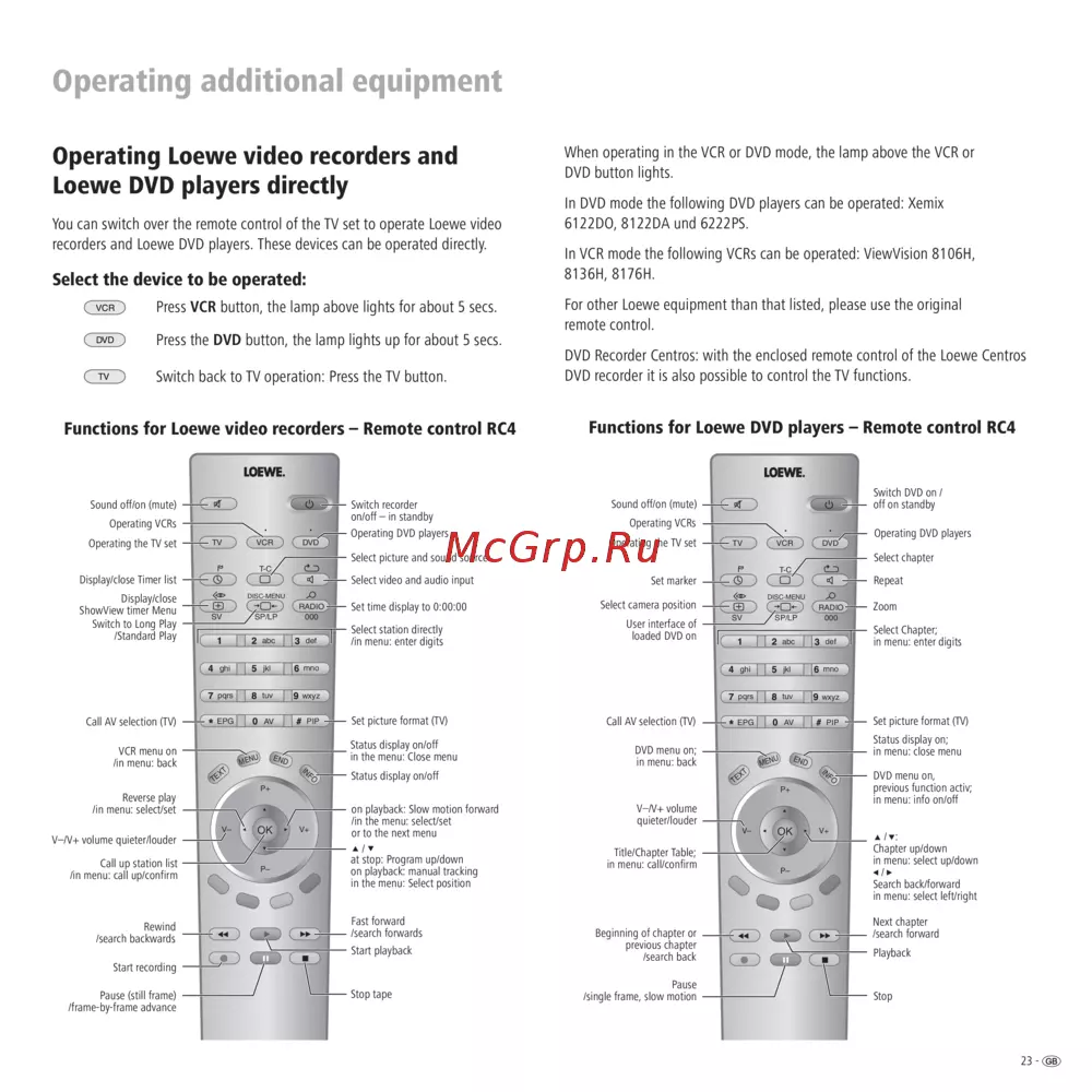 - Functions for loewe video recorders remote control rc4 functions for loewe dvd players remote control rc4 p.23