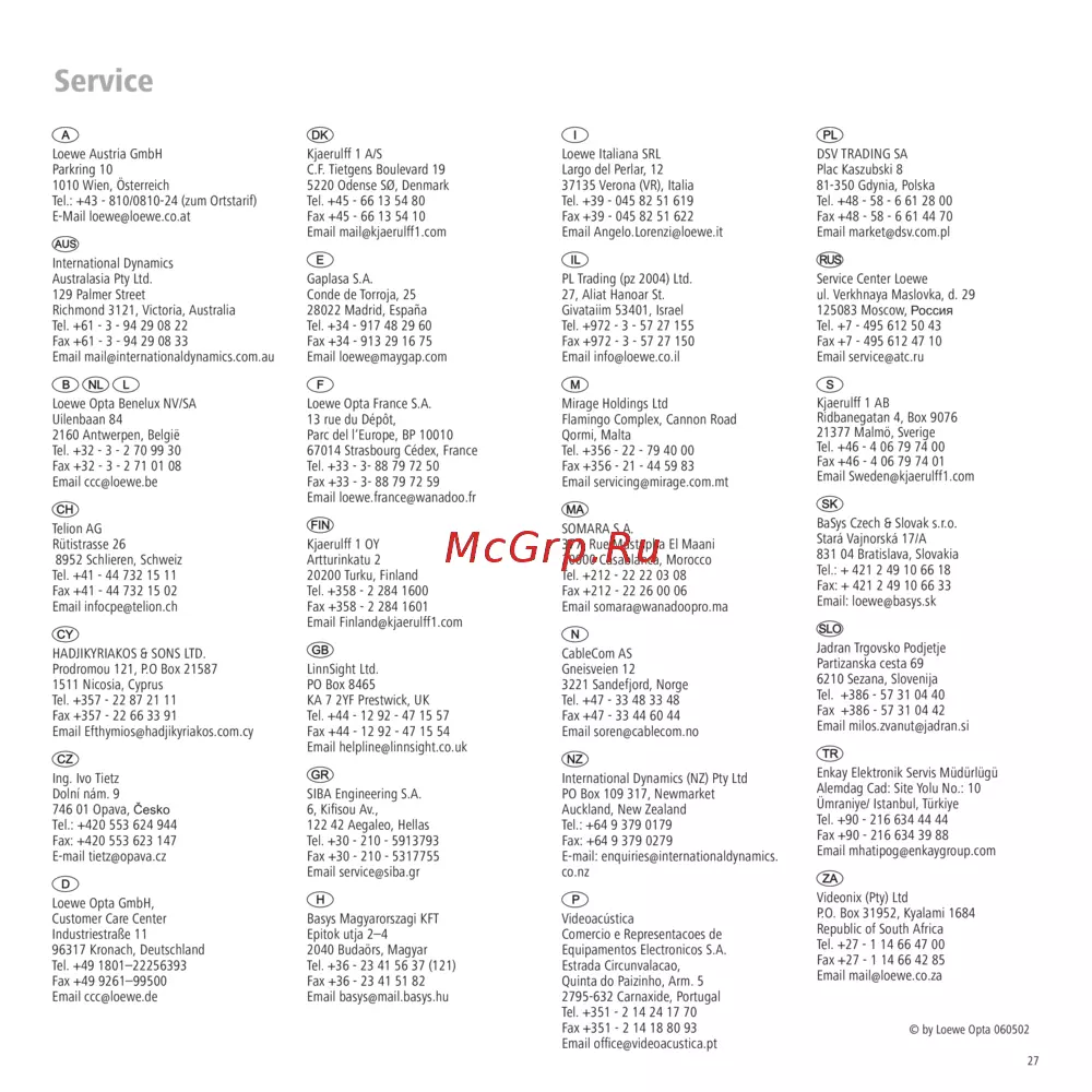 Loewe Xelos A 20 — контактная информация международных компаний и офисов [27/28]
